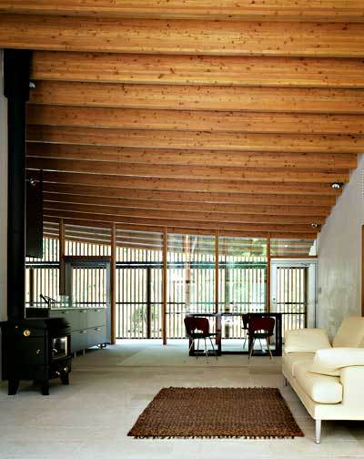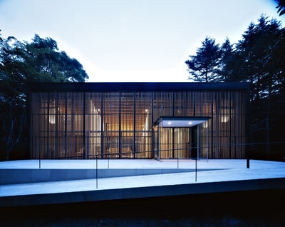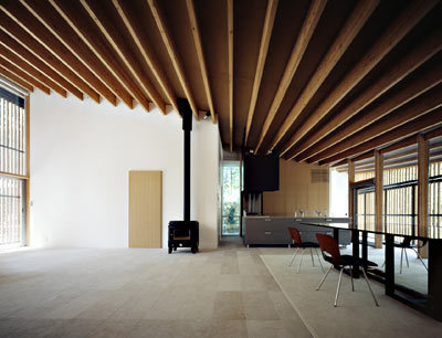 A path along a gently rolling wood leads you to the site. The sunlight and the wind seep through the altering density of the trees. An old traces of artificially subdivided compartments blend nicely to the atmosphere of Karuizawa. And in such a perfectly equalized space appears a vertical interval as if it were created by sudden hand jiggle. Viewing the sight, I hoped to build an architecture which reflects the atmosphere projected from the acquisition of a relaxing presence in the artificial environment.