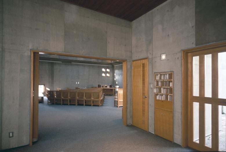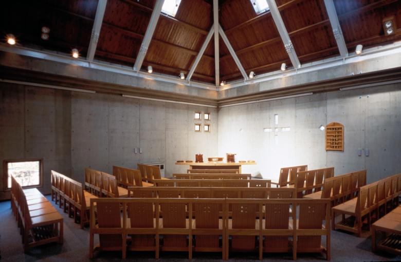 All the main rooms have square floor plans and are arranged in an interlocking configuration. The chapel is filled with light, illuminating and blessing each person gathered around the altar equally. The small chapel shares the same layout and serves as a venue for gatherings other than worship, as well as for children’s services.