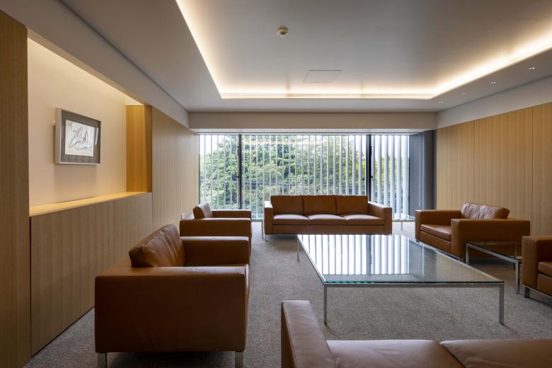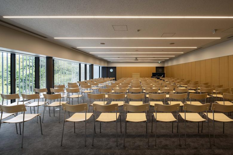 The second-floor lounge is also envisaged as a venue for diverse events organised by the newspaper company, as well as for cultural centre programmes and presentations. Tea ceremonies and ikebana flower displays have already been held here.