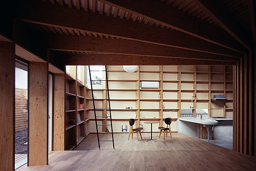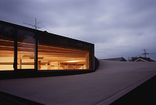 This house for a couple is built in a residential area on a gentle hill in the northern Tokyo. The site is located at the top of a hill connected with a narrow path leading to the actual building lot.