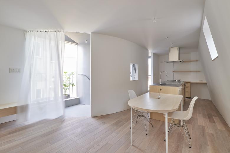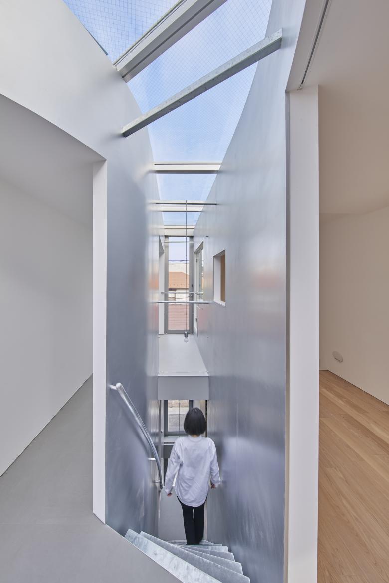 The site is a small subdivided lot into residential areas in the city center and surrounded by houses. By connecting the road on the north side of the site - the house – and the adjacent pathway on the south side of the site with a valley as if to scoop up trivial scenery, and by connecting these while incorporating it into the house, the urban space and residential space become ambiguous and scoops up elements scattered in the city.