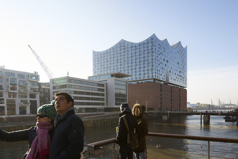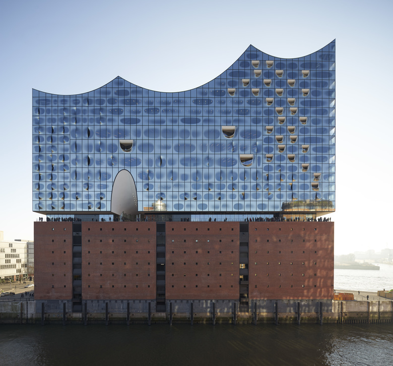 Like an iridescent crystal, the ever-changing glass sails of Hamburg’s new public philharmonic, the Elbphilharmonie, sit on top of the old Kaiserspeicher, a heritage listed former storage building.