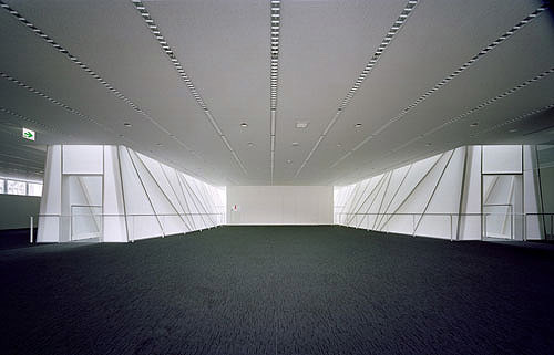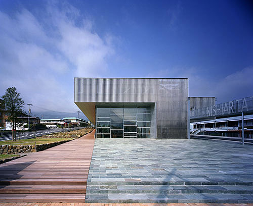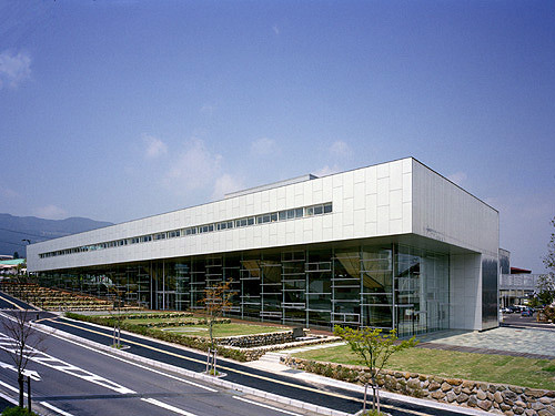 Encouraged by the restructuring movement taking place within local Japanese government, the town of Nishi-arita entered negotiations to merge with its neighboring towns. To provide for their own use and for a sense of identity in the wake of this restructuring, the residents commissioned the construction of a new town center. The building is situated on two levels of what was originally a stepping rice-field and, due to the volatile nature of ongoing negotiations, the building must remain open to reprogramming. With this in mind, our primary gesture was to enclose the entire first floor within a huge roof and to suspend this structure above the ground floor, creating an open and flexible volume.