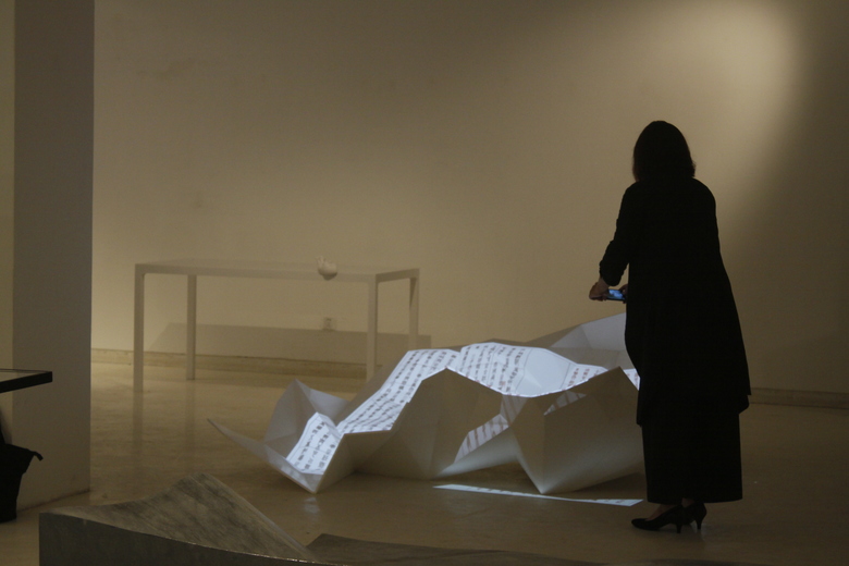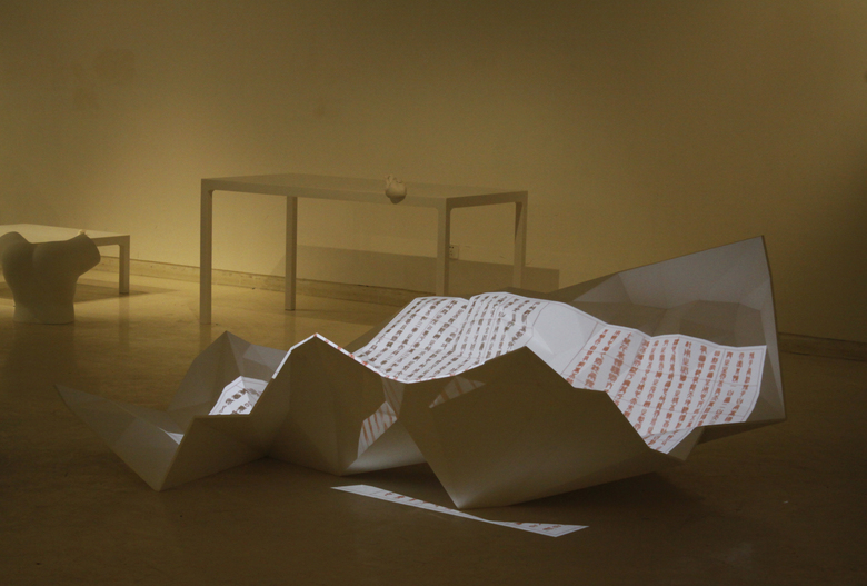 Artificial stone is similar to concrete in plasticity and solidification process. We wonder whether it can stand on ground like thin crepe paper while looks soft but in certain shape, whether it can serve as a real battle filed where smart and flexible multi-media tools can have a war on it. Paper war may not be paper war after all.