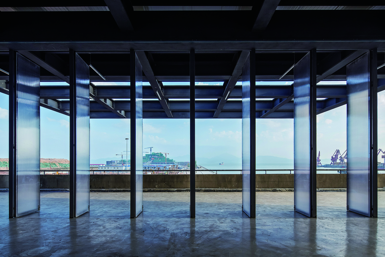 In the north of the site stand the silos which, with the highly sculptural volume and impressive height, boast the most distinctive feature of DaChan Flour Mill, while to the south of the site there unfolds the fantastic sea view of the busy Taiziwan Bay. So how to invite both views into the renovation and make them part of the attributes of site becomes the starting point in design of the lecture hall. As response, visual corridors and some height points are provided in the north and south of the site to avoid the sense of enclosure caused by the box-like industrial building. The north and south facades are defined as two gigantic frame finders to bring in the most attractive views, meanwhile, create an open and transparent performance space against the urban backdrop. With addition to and renovation of the lecture hall, 1F is displaced with the Maker Maker exhibition, 2F the bathrooms and meeting rooms under the steps, 3F with the leisure bar. Besides, the spaces of the grinder building are borrowed to serve as VIP lounge. With interplay and organic combination of the functionality and space, a mini-conference complex is created.