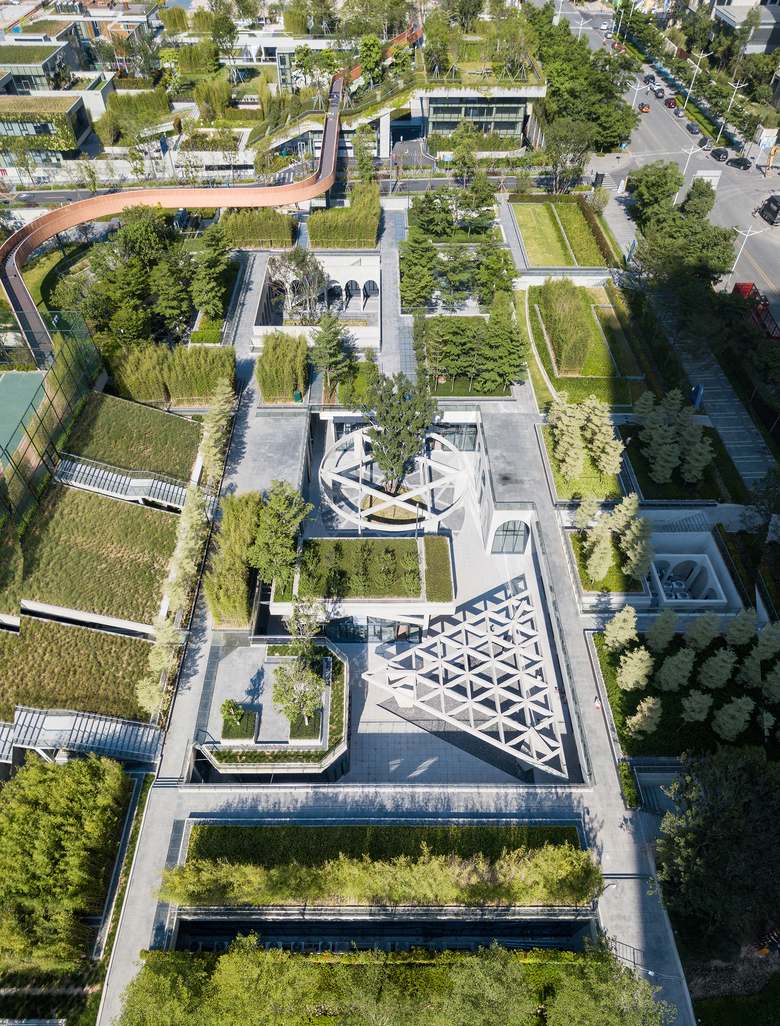 Each underground singular building may be conceived as a table in abstract sense, with the tabletop as urban green and the space underneath it as below-grade levels. The occupied spaces of the buildings are designed and combined on top of the structure. Those independent, simple and differentiated tables together form a nearly 4,800 sqm of double-level landscape.