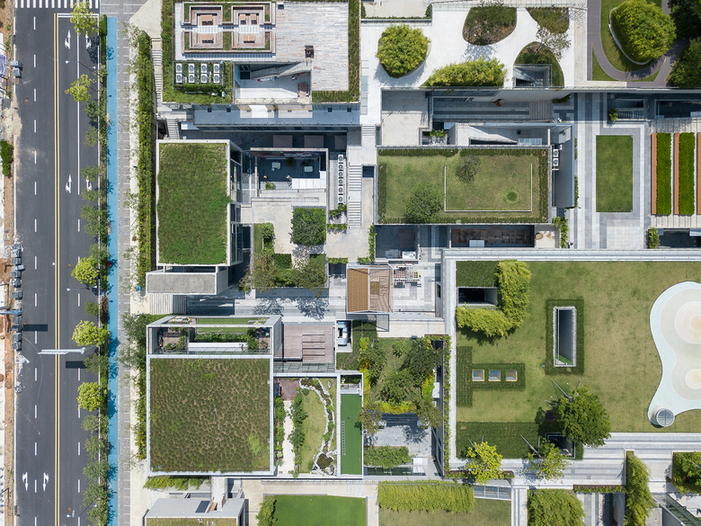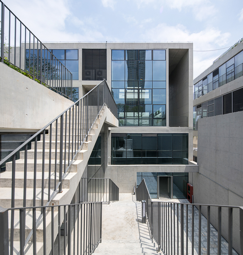 Due to height limit, most building spaces are below ground level. In order to improve ventilation and daylighting, independent courtyard was adopted as architectural prototype, each consisting of three elements, i.e., two floors of spaces/stairs/garden. Despite these common elements, there are also varied ways of alternation and re-assembly, and different urban design locations and neighboring relations. As a result, these courtyards, each with its own features, are mutually interactive yet independent. They can be either separated or combined; although being placed below grade, they also enjoy generous view and pleasant ventilation and landscape just like those at grade.