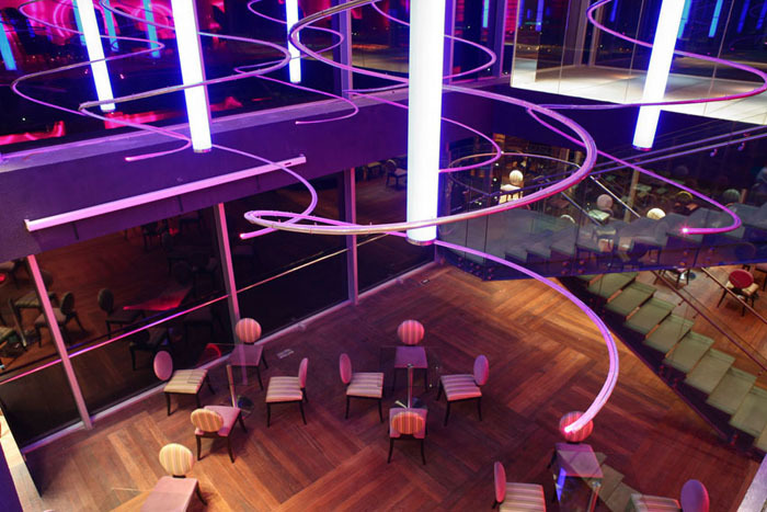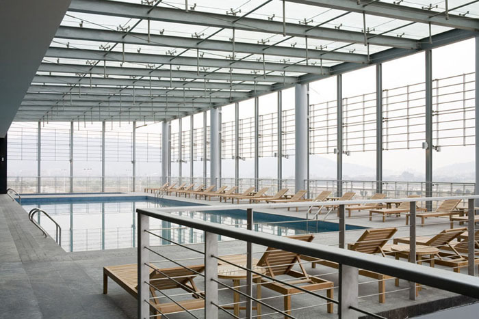 Dis-orientation and anti-gravity in the upper sky are the thoughts to start the design. A garden is an idea of being horizontal with multi -angles of perspectives. When it flips up 90 degree, it becomes a vertical garden. A piece of view and green is brought in one direction horizontally, which chooses to go up with fast elevators or a slow stairwell, finally extends towards another direction in the vertigo. The stairwell with views of multiple perspectives is an experimental detour from the gravity.