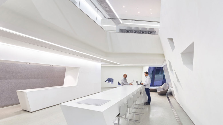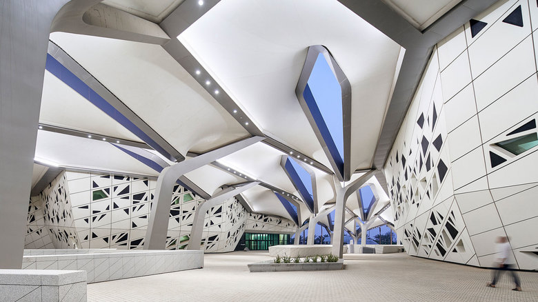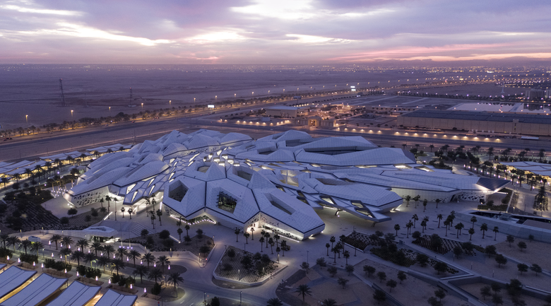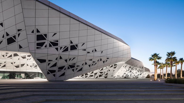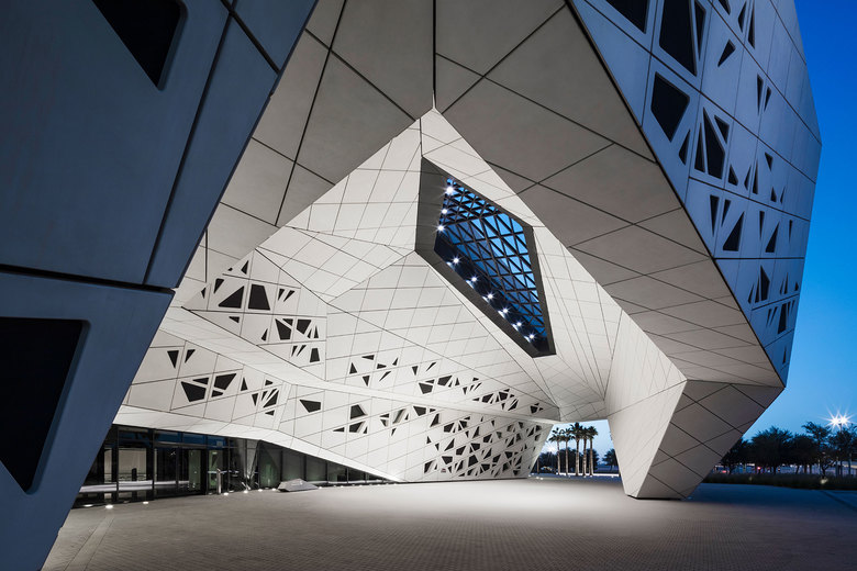 As an avant-garde icon, the KAPSARC building complex creates a striking impression on land and in the air, visible from both cars driving into Riyadh and from planes flying into the city. At night, the folded, honeycomb structure is visually sculpted by a gradation of light, with differing intensities of light and shadow underscoring the interlocking, multi-dimensional cellular forms. A masterplan of energy efficient lighting is implemented throughout the 51,000m2 (548,960sq.ft.) building complex to meet its LEED-Platinum goal, a first-of-its-kind in Saudi Arabia.