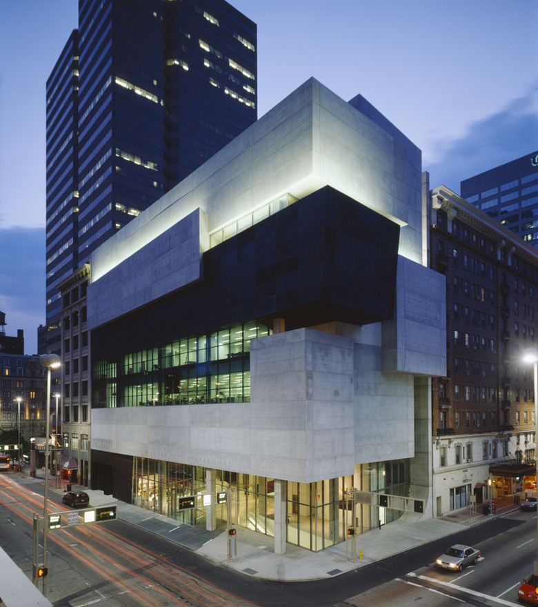 Lighting solutions for the Lois and Richard Rosenthal Center for Contemporary Art match the dynamism of the museum’s architecture. Instead of traditional floodlights, linear luminaires concealed in the exterior parapets outline the building’s stacked volumes. Office ceilings are critical to the nighttime identity of the project due to the fact that they add spatial depth and become an integral part of the façade. Visible from the outside, luminous bands are arrayed above the open-plan spaces on two stories in an accelerated pattern. This creates an exaggerated perspective effect that subtly reinforces the architecture’s sense of movement.