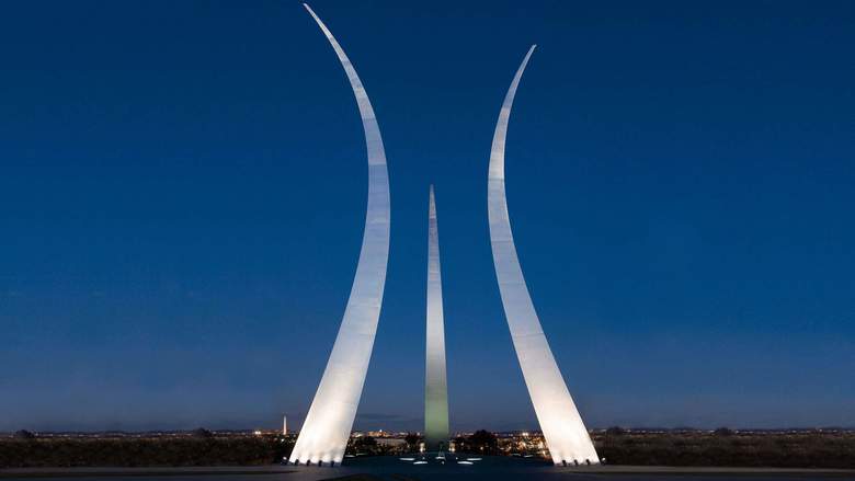 Reinforcing the architectural agility of the United States Air Force Memorial, illumination appears to emanate from within the monument itself, bursting into the night sky. Efficient floodlights with narrow beam optics are concealed behind flanking granite inscription walls. The light is precisely aimed along the arc of each spire, subtly articulating the curving tips of the monument. By brightly illuminating the top third of the structure, OVI creatively met regulations for lighting in commercial flight paths.