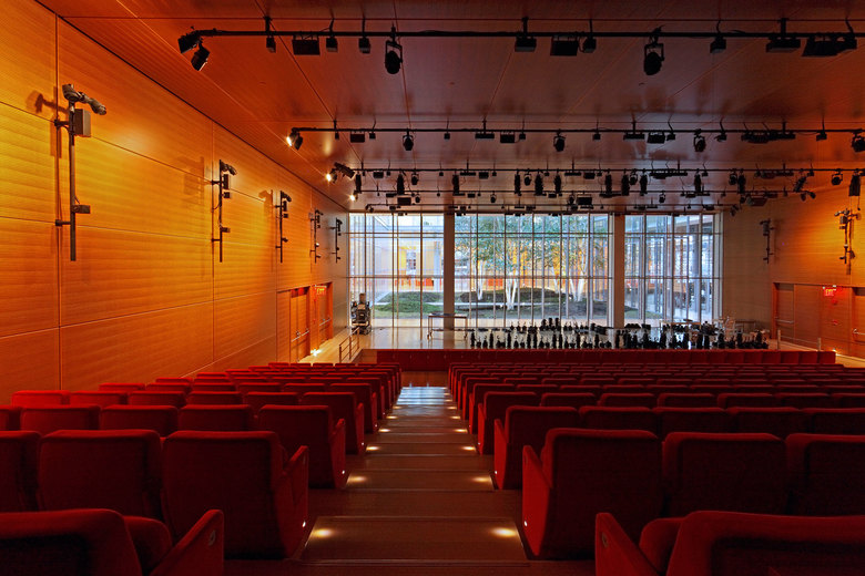 Conceived as an integral part of The New York Times Building, The TimesCenter is a performance venue consisting of a 378-seat auditorium and a reception space. The glass-fronted auditorium hosts the TimesTalks television series, book signings, and various performances against the unexpected backdrop of a garden courtyard.