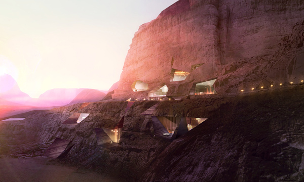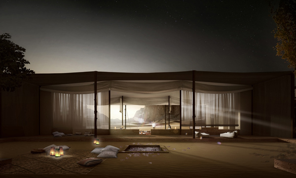 The architecture we will humbly create within the realm of the Wadi is intended to miraculously and meticulously add another sound in a perfect symphony, another ingredient in a perfect dish. The conceptual point of departure has its roots in the tectonic and geological histories of the region. Through an engagement of the existing natural faults and fissures, the architecture is inserted in the landscape with nominal impact and primal elegance-synchronizing with the topography. Symbiotically and sensitively attuned to the rhythms of the area - a responsible stewardship of the environment. The boundaries between man-made and nature, interior and exterior are deliberately blurred establishing maximum effect with minimum affect. The lodges are nestled across the landscape -- enhancing rather than distorting an awareness of the context. An enlightened new approach to living with the land and not simply upon it; learning anew how to see, hear, touch, taste, and smell. Beauty, power and humility is achieved through a profound understanding of flow, light and orientation with the topography-fermenting a relationship with the surrounding desert. Simplicity and functionality are inherent to the entire design-- so that nothing distracts the eye. The lodges and villas in their various incarnations; rock lodge, spa lodge, tent lodge and reserve villa are all designed as spatial responses towards establishing a connection, not dislocation with the awe-inspiring planet we inhabit. Their architectonic form responds directly to the rich regional cues: an evolutionary process that has established, over millennia, a clear and appropriate type that is in resonance with nature.
