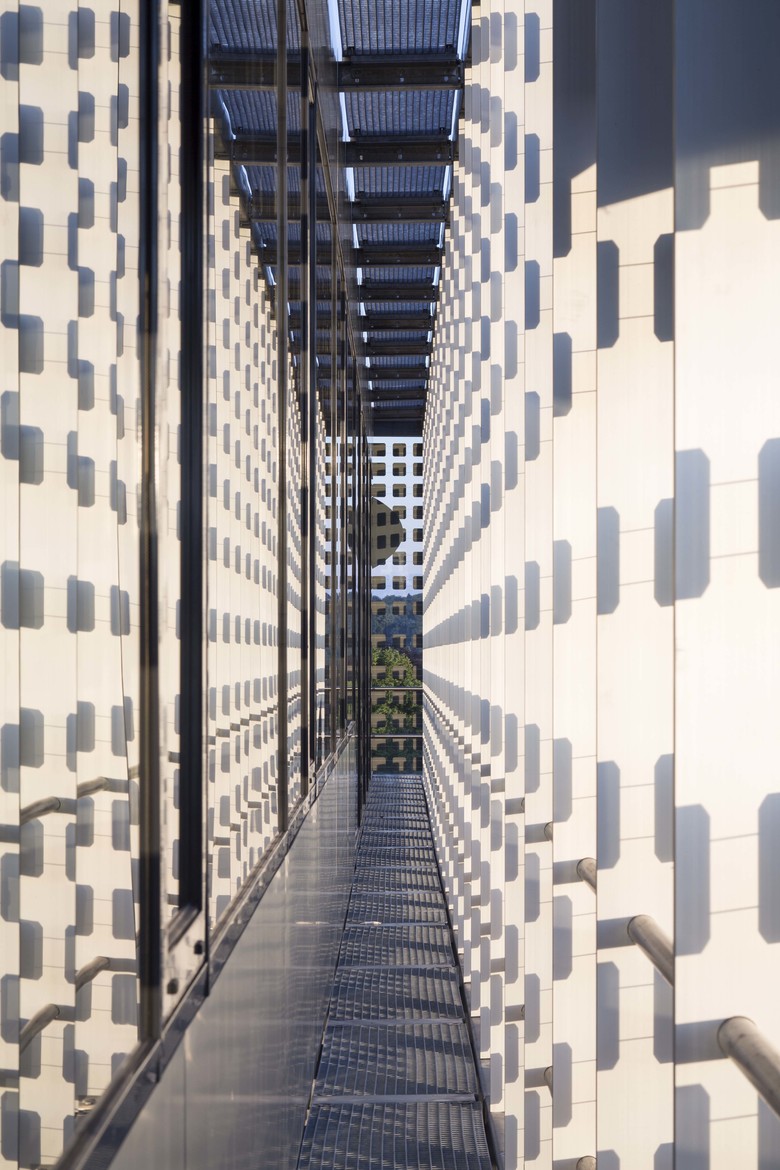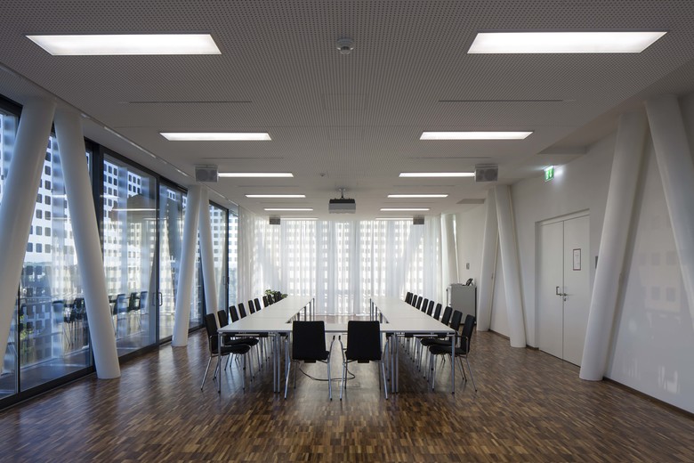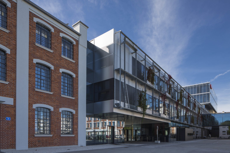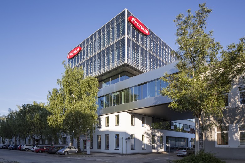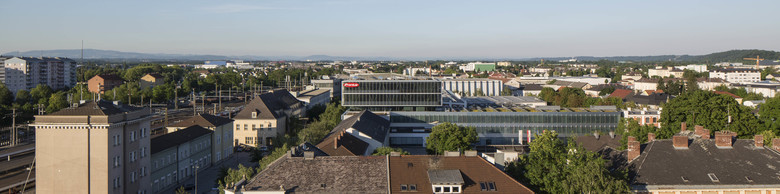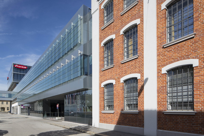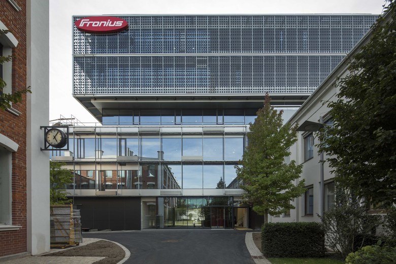 Revitalisation, rehabilitation and renewal Global Distribution Centre for FRONIUS in Wels. Located near the railway station in the centre of Wels, although different in function and appearance, it relates to its context in scale and volume, as well as in its position and relation to the district and street. Old and new building structures complement each other and react in shape and context in a dialogue with the urban structure. The new building adapts itself in the space restricted by the predefined structures, reacts to existing building lines and defines with the AktivEnergyTower a new qualified urban corner at Bahnhofstrasse. Essential formative elements easily move about one another to form stacked levels above an existing construction body. The AktivEnergyTower achieves approximately 40 kWp with its photovoltaic facades, which completely wrap up the high energy efficient isolated facades and lend liveliness by the arrangement of the PV cells in the horizontally jointed facade. Whereas during daytime the slightly reflective skin summarises the office building to a closed unity, in darkness the building structure becomes visible by the shimmering through artificial light. Glass lamellas in the west facade of Froniusstrasse for solar protection of the office units behind, as well as plant covered screens at the East facades complement the bright, permeable building structures. The first autonomous revitalization (rehabilitation, reconstruction and renewal) of a former urban industrial quarter in the standard of Passivhouse offers a chance for the huge amount of 20th century housing projects to be converted into best practice objects. This could be a good basis for the improvement of promotions to urban energy efficient factor 10+ renovations. A profit energy concept for room conditioning in service buildings under exploitation of renewable resources is applied and accompanied by a passive chill strategy for the service building on the basis of office- use.
