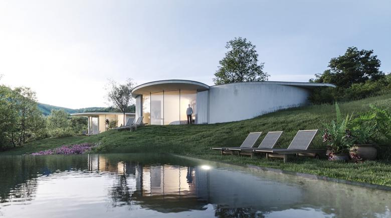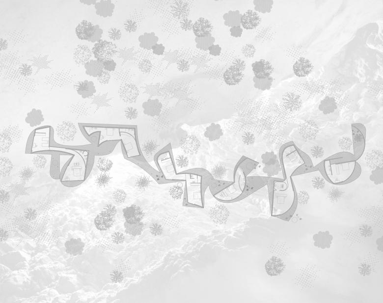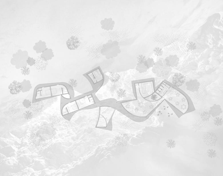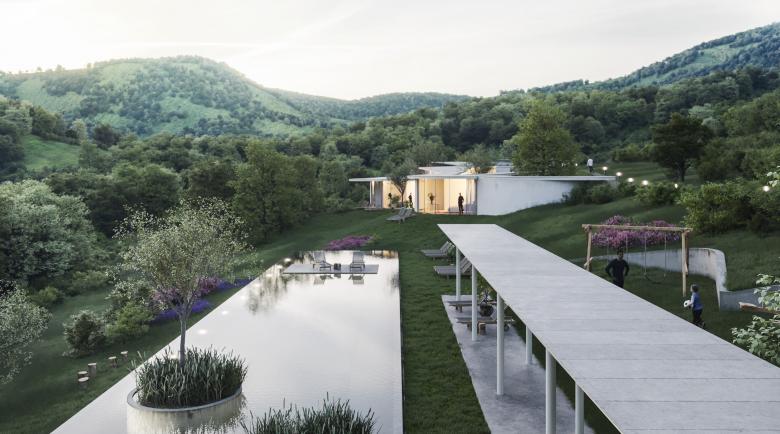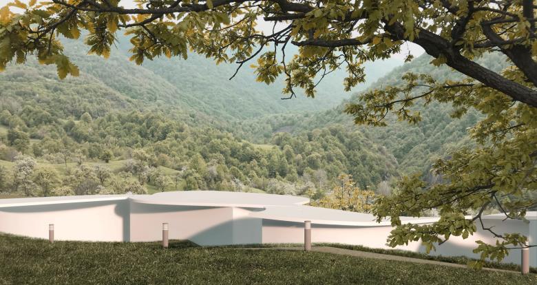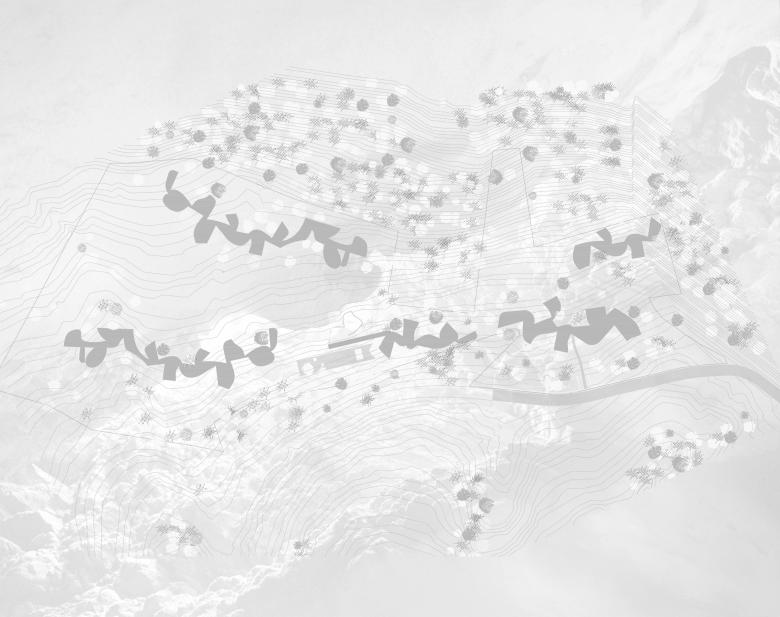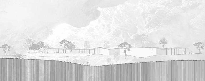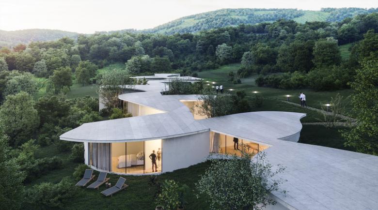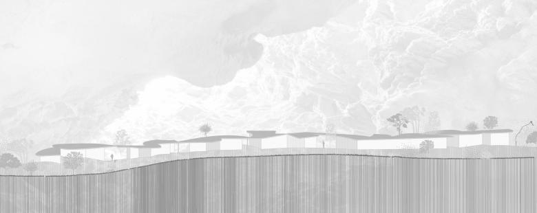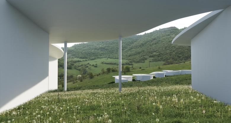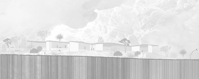 These units embody the randomness of trees or rocks in nature without preconceptions, This is reflected by the fragments forming a loosely defined yet articulate pattern of forms under a thin roof that seems to be lightly placed over them. The rooms allow for shaded areas in between communal outdoor spaces that have a friendly human scale, that nevertheless open on their sides to the widely spreading landscape. By freeing the reinforced concrete canopy of the roof from the volumes underneath, an unexpected visual fluidity and lightness is achieved. The strive is to impregnate the visitor with a desire to experience nature, to make them effortlessly discover new perspectives within the landscape and to reveal a world of poetry and sensitivity.