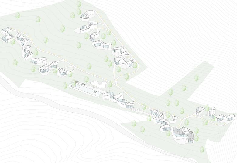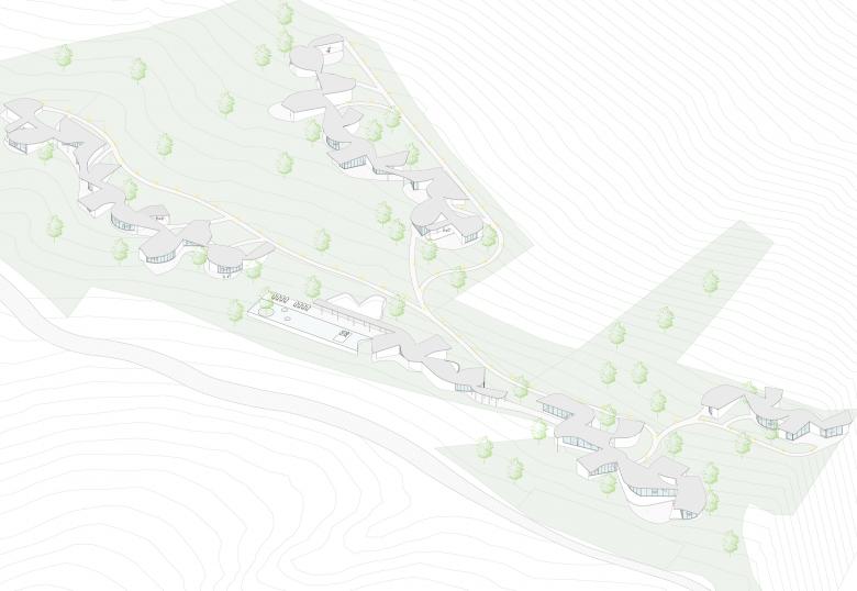 The program consisting of a restaurant, reception and lounge, a SPA with an outdoor pool and 20 suites. Outdoor activities will include open air lounges, bars, movie screening and others.