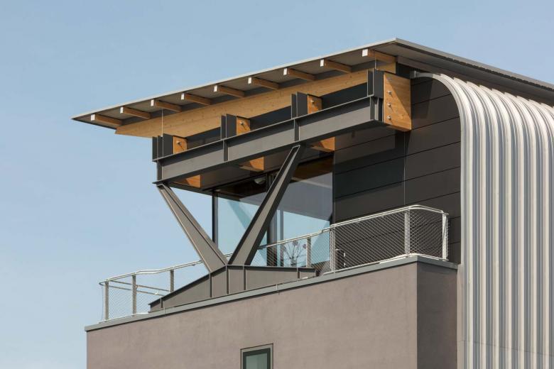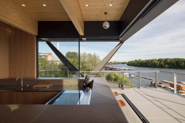 Diese Nutzungseinheiten werden in einer Aufstockung auf das bestehende Dach um einen Multifunktionsraum für Teambesprechungen, Workshops und Büronutzung erweitert. Eine zusätzliche Teeküche dient der Bewirtung.
