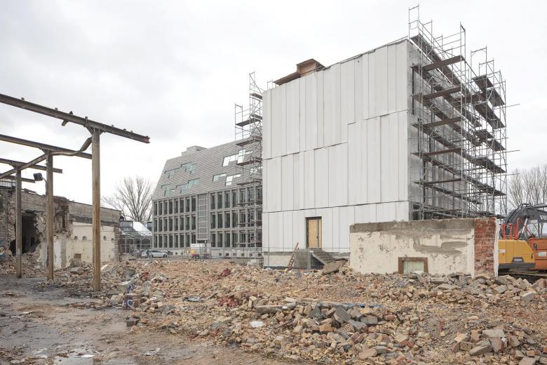Neben zwei unter Denkmalschutz stehenden Gebäude aus Zeiten der Flussbadeanstalt sind zwei Bauten aus DDR-Zeiten erhalten, die umgenutzt und aufgestockt werden - das ehemalige Dienstgebäude und die ehemalige Kantine.