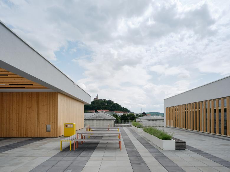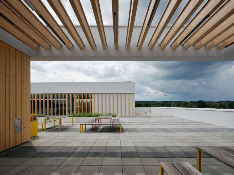 • By stepping the functional levels generously sized terraces are created in front of the main teaching spaces. These can be used during school breaks, but also for giving lessons outdoors. This applies to all three levels of the building.