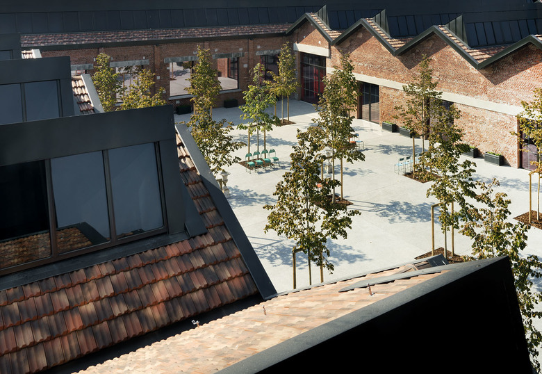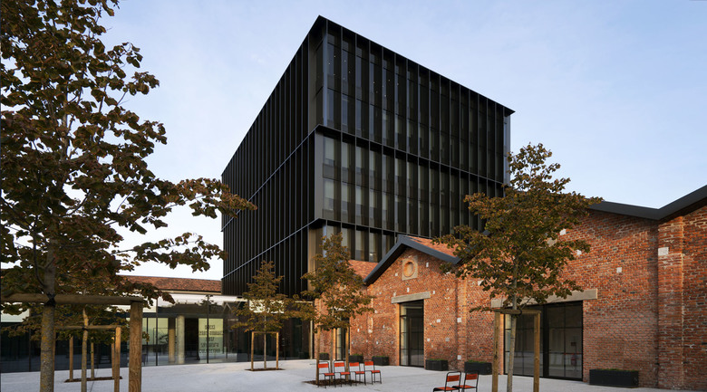 The redevelopment project of the old Caproni factory focuses on enhancing the stylistic features of the 1920s’ architecture and aims to transform this old plant into the new Gucci Headquarters in Milan. The abandoned industrial warehouses, covered by a shed style roof that lets zenith light flow into the interiors and characterized by modular structural bays, create through the spatial layout seamless interaction between the inside and the outside. The large hangarm that now hosts events and fashion shows, and the new six-storey tower, which interacts closely with the old constructions, stand out within the site area. Covered with a regular pattern of sunscreens, the new building breaks down the site’s symmetry and generates a powerful chromatic relations with the red-coloured exposed bricks of the low-level warehouse. Pedestrian paths run between the buildings, which are mainly located on the ground floor, in a sequence of solid structures and empty spaces in which landscaping plays a key role.