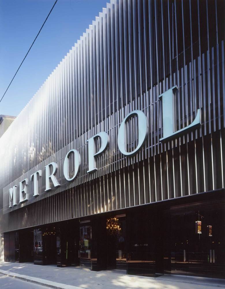 Dolce&Gabbana’s multi-functional space in the heart of Milan occupies the former Metropol movie theatre. The original building, which dates from the 1940s, has been completely restructured and expanded by about 1,000 square metres in order to accommodate an event hall and several conference rooms which, together with the existing building, cover an area of 3.500 square metres. The large illuminated sign of the Metropol cinema has been conserved, while the façade itself was substantially rebuilt, endowing the new building with a particularly striking aspect. The facing, realized with steel strips that twist along the vertical axis, gives a kinetic effect to the building, in that the façade changes appearance depending on the viewer’s position as well as on the position of the sun and quality of the light.