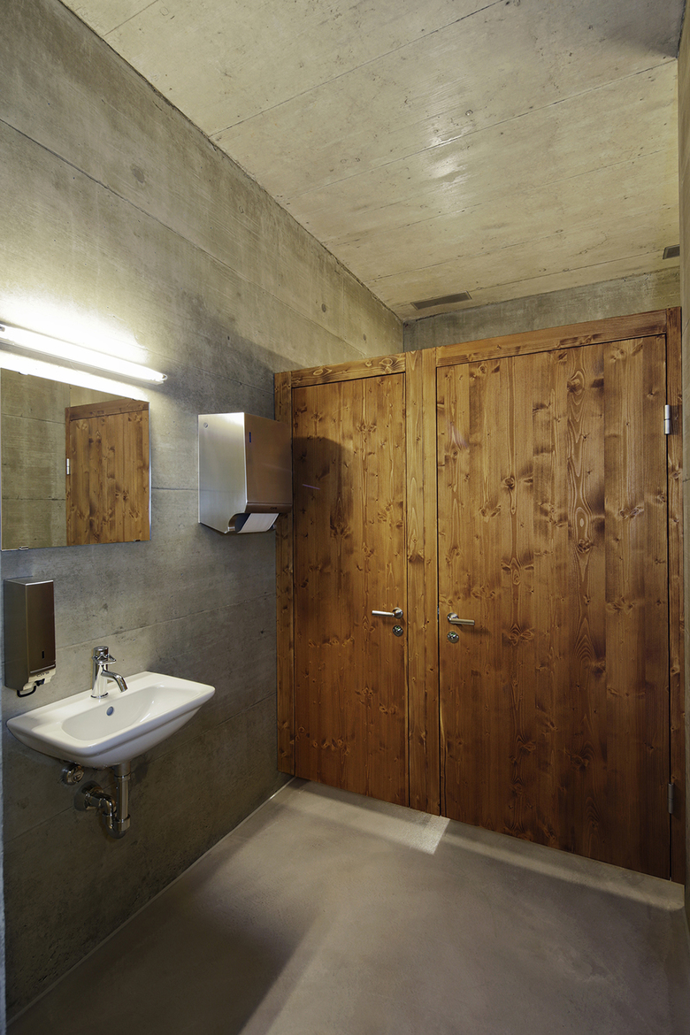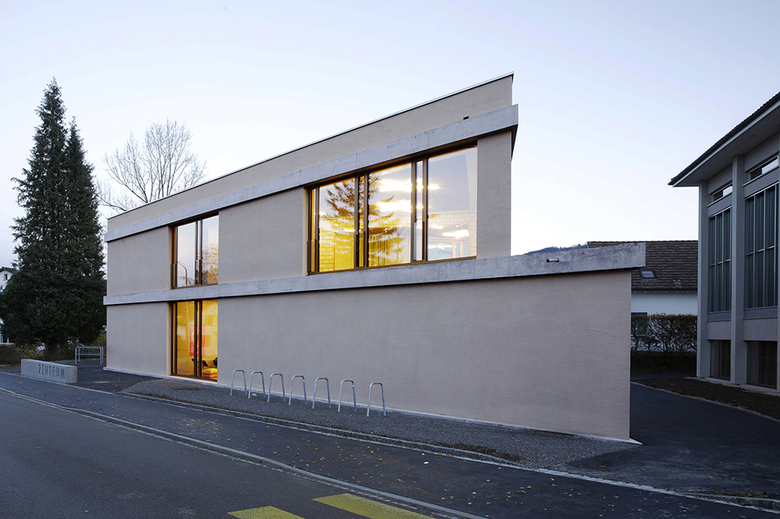 Im Obergeschoss liegen das Büro der Jugendsozialarbeit, ein grosszügiger Kreativraum, ein Raum nur für die Mädchen sowie ein weiterer multifunktionell nutzbarer Raum. Um auf künftige Anforderungen reagieren zu können, erlaubt die Statik eine spätere Aufstockung um ein Geschoss.