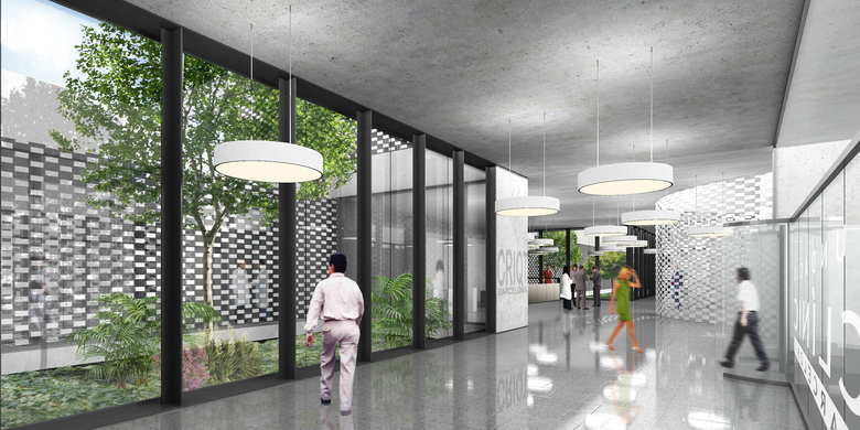 This building was introduced as a new efficient research facility, a product of the deployment of an optimal, rational, complete and structured system enhancing the institutional and symbolic character of these types of buildings, which are lack today. The building features a rectangular volume covering three floors (two above ground), pursuing topographical optimization, emphasizing the finest visual elements and maximising the use of natural light. Inside, it houses today’s most advanced technologies, including a surgical wing with space for 36 operating rooms.