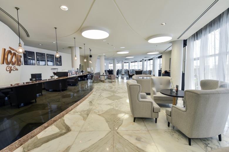 The cladding of the building is in stone, while the floors of the prestigious areas are in Carrara Calacatta marble.