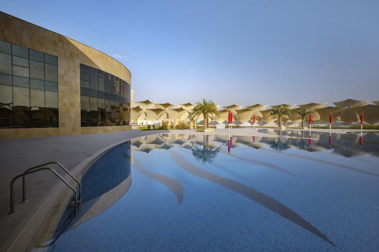 The entire complex is immersed in a park of 180,000 sqm overlooking the sea: in front of the club beach a special lagoon has been created, between 120 and 150 meters wide, separated from the open sea with a series of strips of land and breakwaters : in the lagoon women are free to swim and sunbathe without the Abaya, the characteristic covering dress of the Persian Gulf region, far from any prying eyes and curious boats. The Ladies Club represents the best of made in Italy thanks to the prestigious Italian companies that have contributed to its realization with the excellence of their products. Sanitary ware and finishes were entrusted to: Nobili for taps, Mirage for the tiles, Azzurra Ceramiche's sanitary ware. The lights bear the signature of Guzzini, Targetti and Lamp. The furnishings were curated by Meritalia, DV home collection, MB chairs.