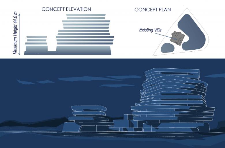 Within the plot of the project, a prominent villa of historical importance already exists and was maintained to respond to developed as a high quality restaurant. The overall height shall be 12 floors in addition to the underground parking level.