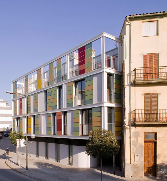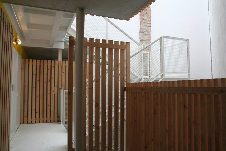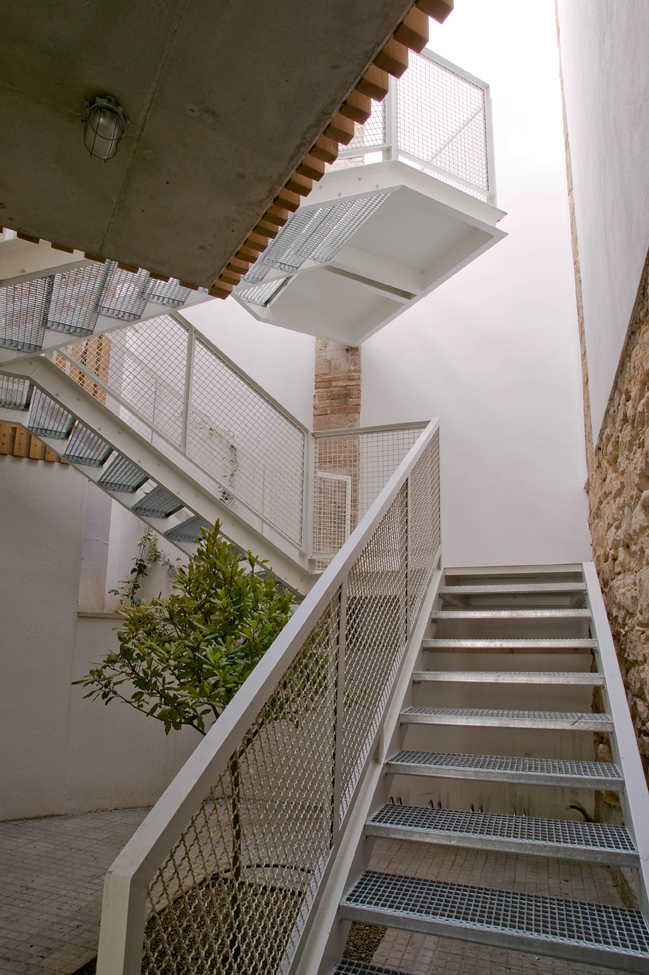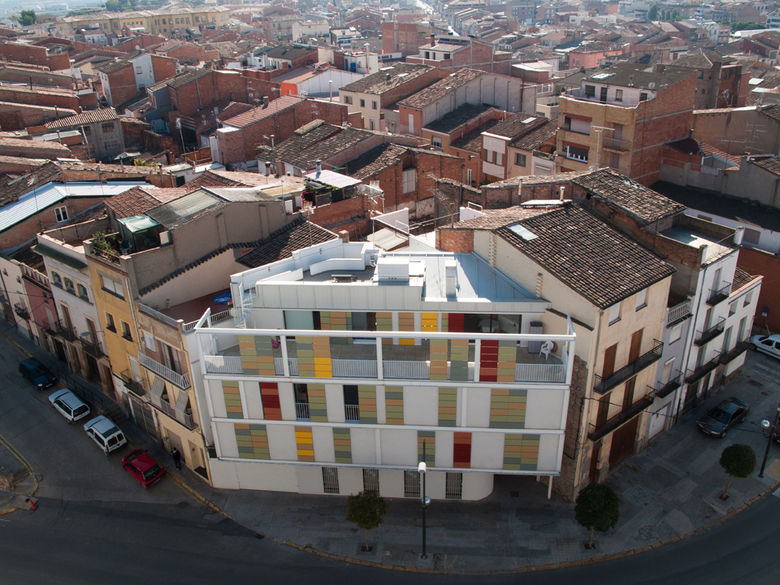 The project consisted building housing for four bioclimatic homes and two commercial locales in Les Borges Blanques, Lleida. This is a ground floor building, plus 2 standard floors, plus a loft and a basement. The ground floor and basement floors are intended for commercial use (local) while the first, second and loft levels are designated for housing. The project aimed to furnish the housing with habitable conditions and comfort and strength parameters which modern buildings must meet while also providing it with a high degree of sustainability and energy efficiency. The project plans took advantage of the area designated for the stairs, home access landings and the airshaft, converting it all into a single outside space with greater dimensions that will become a place for interaction between the building’s users while ensuring more and better lighting and natural ventilation for the dwellings.