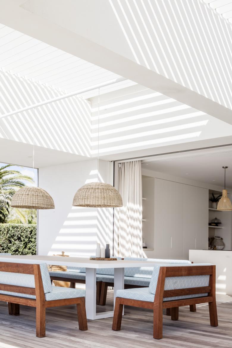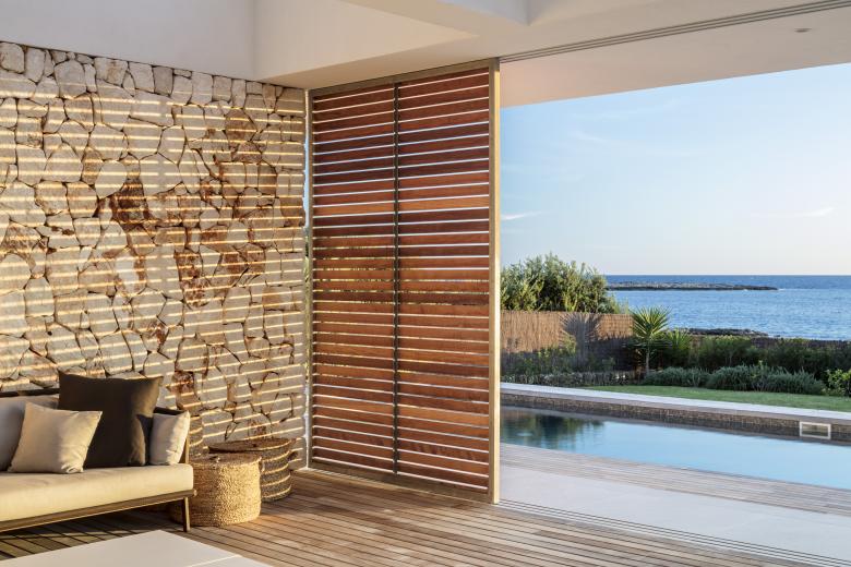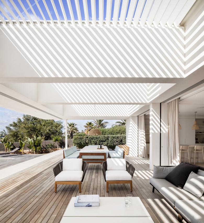 The openings, shutters, pergola and courtyard all adjust to ensure optimum comfort depending on the time of day and weather throughout the year.
