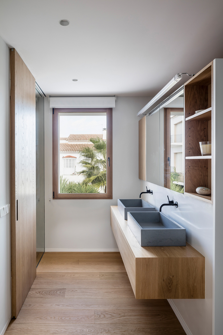 The limited dimensions of the plot meant that we had to be very aware of the occupancy restrictions and design a compact structure; this was a challenge, as we needed to resolve the issue of limited ventilation with wooden carpentry in the bedrooms comprising fitted composite windows that allow for ventilation while preventing mosquitos coming in, and also ensuring clear views of Mahón Harbour.