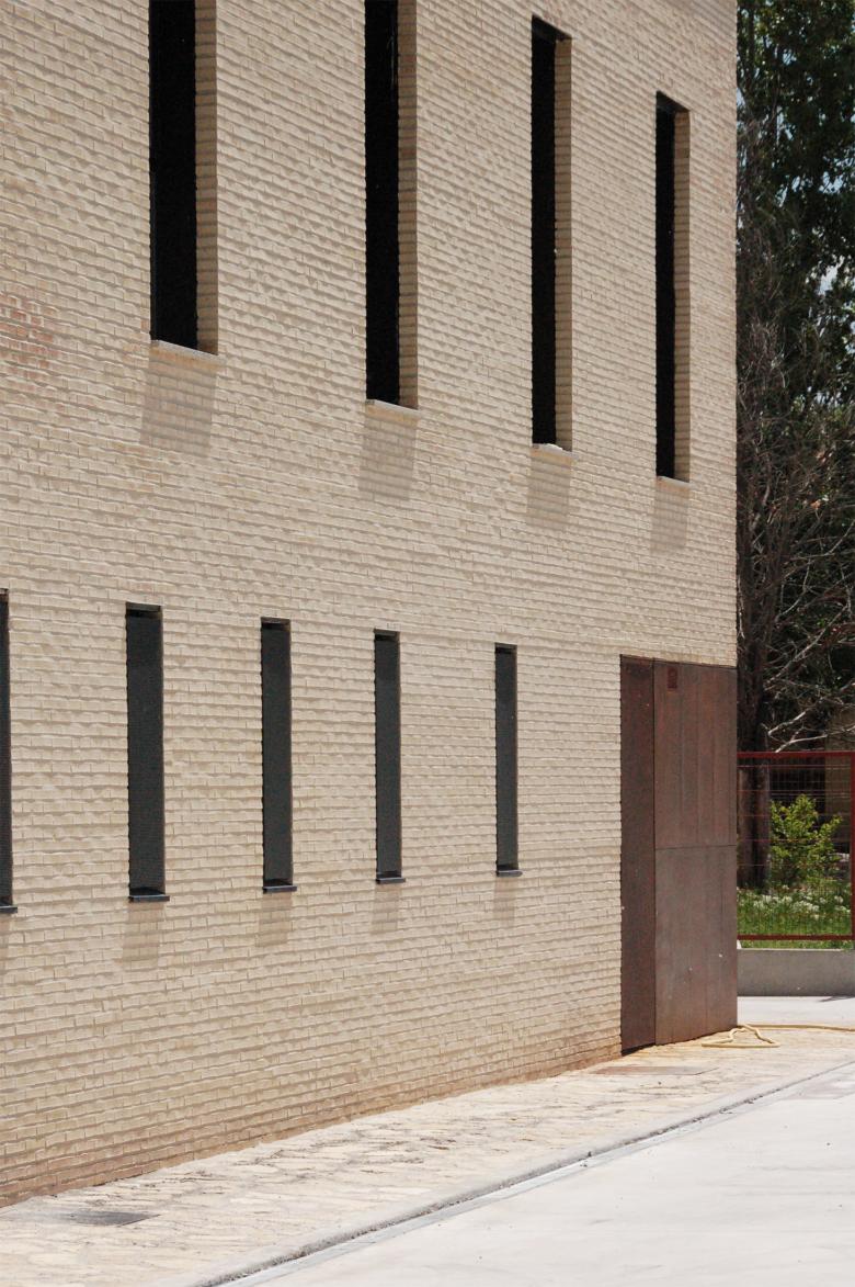 Se trata de un edificio monolítico, abierto al patio interior y con huecos de fachada singularizados y de relativa poca dimensión. Tampoco es casual la diferencia conceptual entre las fachadas Norte y Sur. La primera más acorde con un edificio singular, al ser la que linda con el Polideportivo, y la Norte más fragmentada y con una escala más urbana.