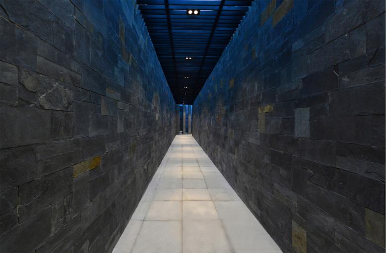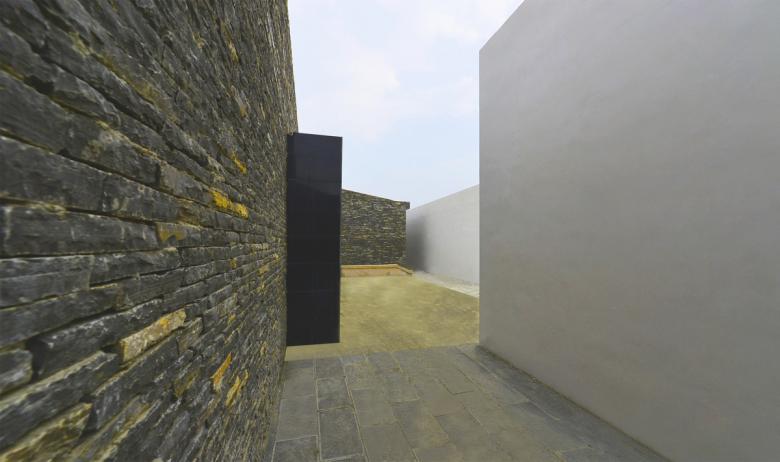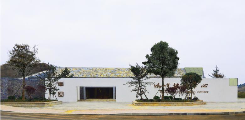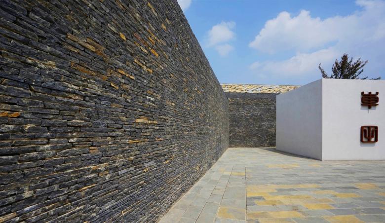 The Architects integrated this characteristic parallel feature in the design of the tourist center. Three parallel units (bands) are arranged following a L-shaped unit, which creates interesting outdoor spaces, in China categorized as “Yuan” (院), courtyard. This first band is characterized by white walls embracing the courtyards, white walls which create a ritualistic impression in contrast with the stone ones.