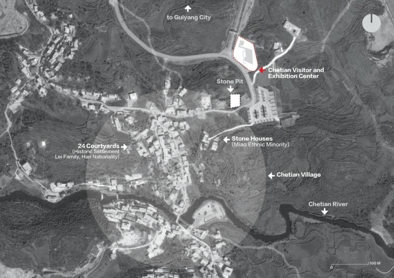 The Tourist Center is located just outside Chetian Village, on the main road arriving from Guiyang, the capital of Guizhou province. The stone village, famous for its houses built with local blue-stones, has more than 400 years of history and its population is mainly composed by Miao (苗), one of the oldest ethnic minority groups in China.