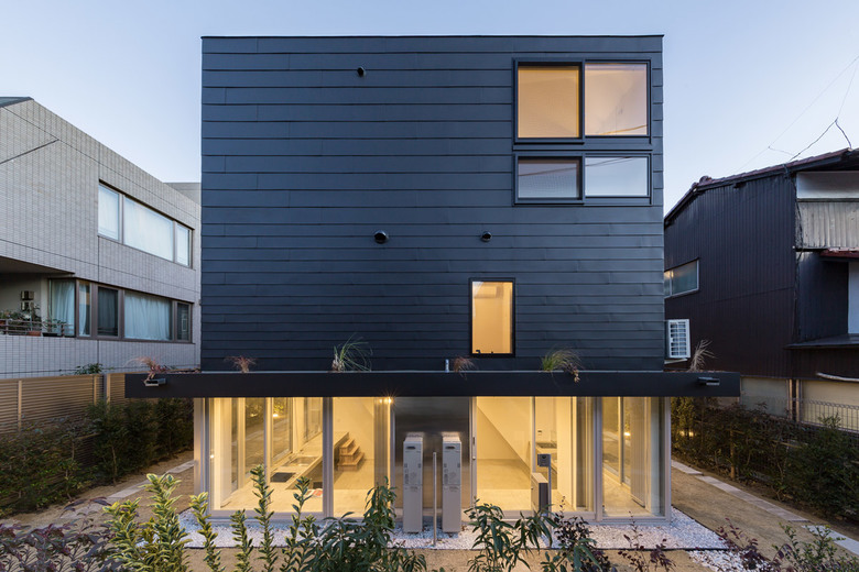 This is a project for a terraced house with 9 dwelling units built on a site located some distance away from the front road. The surroundings are in a peaceful residential area, which shares the breadth of the sky with gardens and openings between buildings.