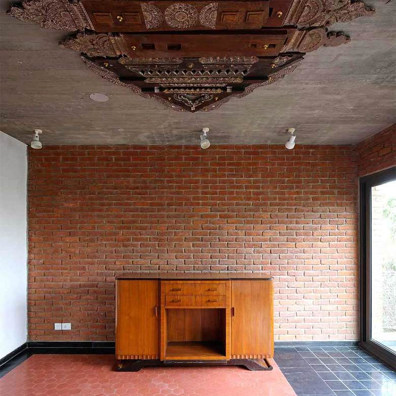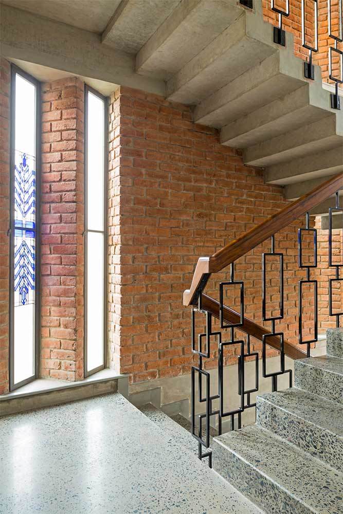 Materials that age gracefully over time have been used to keep the construction process honest while highlighting a high degree of artisanal craftsmanship. Details like stained glass windows and reclaimed doors are inserted into the new construction of exposed brick, cast in-situ terrazzo floors and planked concrete slabs; imbuing it with a modern narrative rooted in tradition.