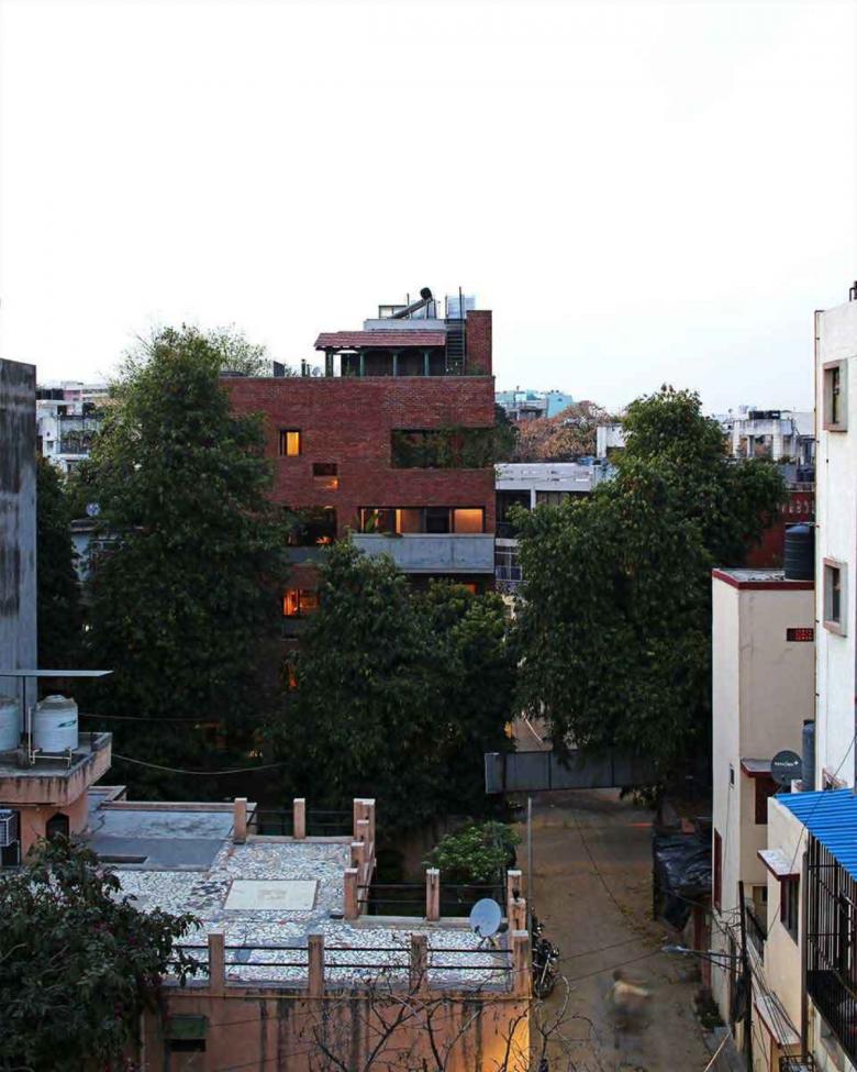 With increasing unplanned urbanization in several developing nations, most residential neighborhoods have become jungles of concrete and noise – both visual and aural. Built within a congested locality in Central Delhi, the House with a Brick Veil seeks to negotiate the fine line of privacy and connection with neighborhoods. It explores potential solutions for middle class multi-dwelling units built on tight site constraints allowing their residents to enjoy their connection with nature.