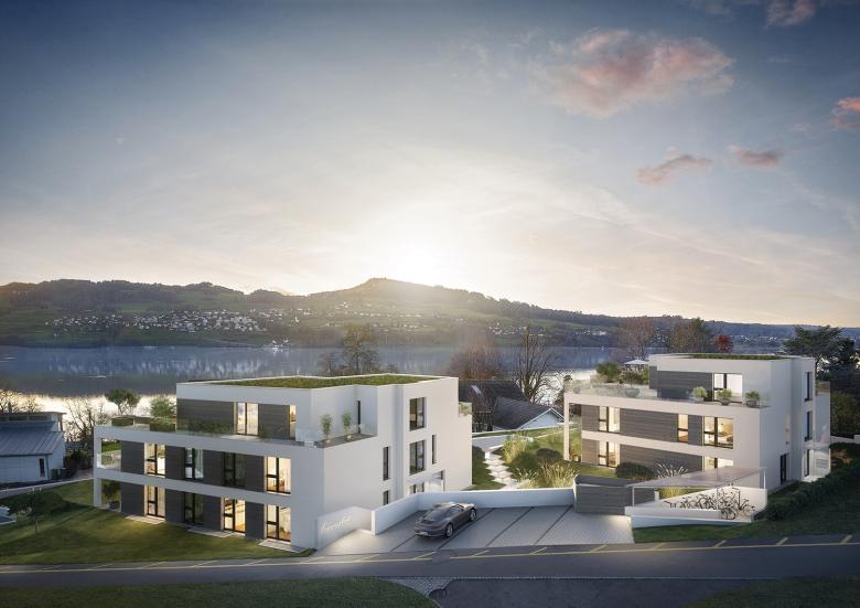 Auf einem Juwel von Grundstück kreierten wir die Wohnüberbauung Kensho. Ihr rascher Markterfolg bestätigte die Positionierung und die hohe Wohnqualität der acht Eigentumswohnungen.