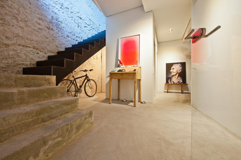 Das Projekt bildet auf Grund der topografischen Lage am Hang das dritte und vierte Untergeschoss eines Wohnhauses. Drei Seiten sind komplett im Erdreich eingebunden und wurden in den dreißiger Jahren mit Einkornbeton direkt gegen das Erdreich betoniert. Diese einzigartige Struktur wurde im Innenraum geschlämmt und konserviert und gibt den Räumen den entsprechenden Industriecharakter. Die raumhohen Verglasungen orientieren sich nach Norden in einen Innenhof und bilden den offenen Übergang des Wohnens zur Stadtlandschaft.