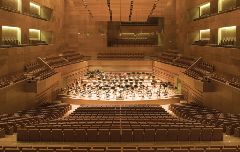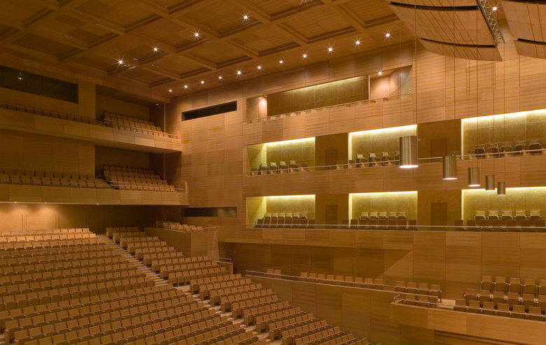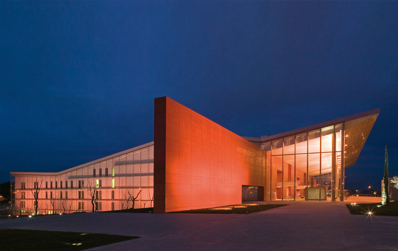 This cultural facility is home for the Castilla León’s Dance School, School of Dramatic Arts, Symphonic Orchestra, and Conservatory of Music. Under a waving roof that echoes the undulating hills of the surroundings, the centre thrives around three main halls, the concert hall for two thousand, chamber music hall for four hundred fifty, ballet and experimental theatre for four hundred eighty, connected together by the interactive plaza and streets where the public, musicians, artists and students, to meet and play.