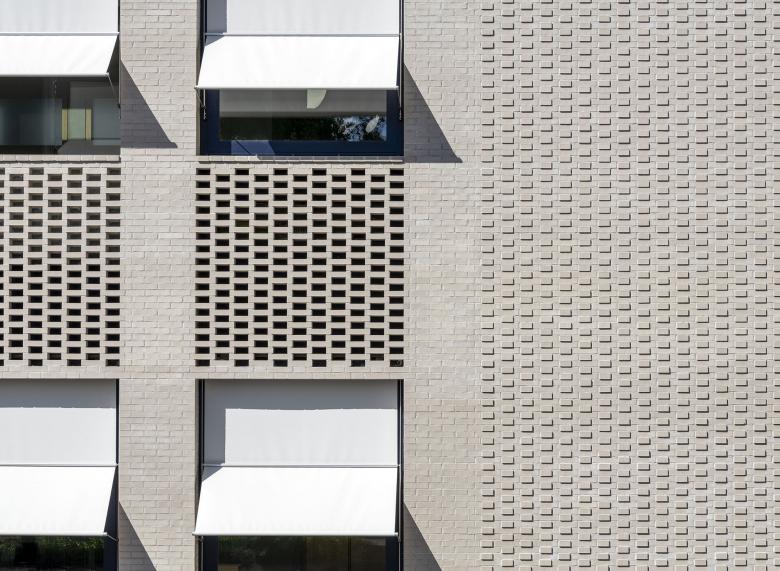 Die Materialisierung beider Bauten in hellem Klinker – angelehnt an die Materialisierung der bestehenden Bauten von Hans Oeschger – unterstützt die Konzeption aus einer Schulanlage ein Ensemble zu schaffen.