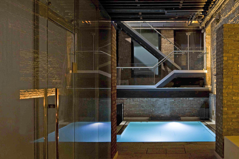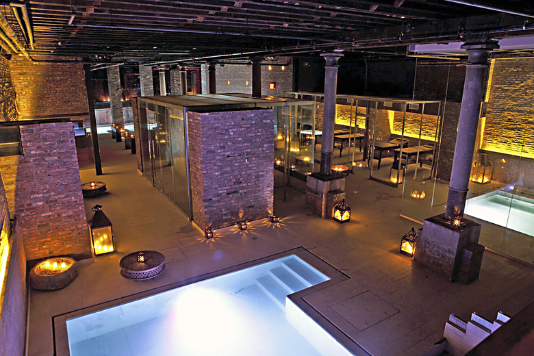 The recovery of the concept of health and relaxation, moved to the urban core city, locating their activities in a historical building protected by the city materially. So on the ground floor are arranged reception areas and different costumes (male and female) while the ground floor is generated ample space, with component of calm, of stillness, of certain environmental mysticism. And all recovering and highlighting original materials: ceramic brick, wooden beams, columns metal casting. The succession of glasses of pools of different temperatures, natural limestone covered in white, shining highlight in the atmosphere generated with enhancing lighting purpose. The elegant glass box center, houses the steam historicist values recover the "Hamman" center of gravity authentic visual functional. The atmosphere of gloom sought and enhanced from the very initial design, power and amplifies the feeling of relaxation intended. The positive effect of surprise for the user supports the goodness of the proposal, that is located between the top spa destinations worldwide, in most reference seekers. The number of departments / facilities there are: -7 different water pools encompassing various treatments (flotarium- salt water floating pool, pools for relaxation, temperature contrast pools (hot water of 42º, cold water of 14º), jet massage pools, Jacuzzis, etc. -1 enormous Steam Bath in the center of the space uniting all of the pools which circle around this area. -Various Massage Rooms -Wine Therapy Room -Heated Relaxation Benches -Space for live classical musical concerts