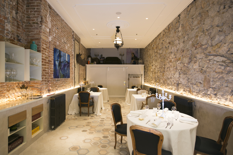 Nobook is an unconventional and innovative restaurant which wants to surprise customers with the creativity of its menu. To match this imaginative proposal, the interior design is based around an industrial aesthetic, exposing brick walls, graffities referencing Basquiat, open ventilation units and high ceilings. Bespoke furniture made out of recycled materials has been designed specifically to meet the uniqueness of the space.