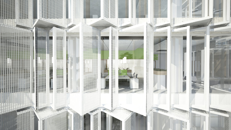 The prominent location of the new building by the main campus entrance calls for an extraordinary architectural design. Thus, one end of the campus building is suspended above a transparent stairway passage, which leads up to the building's main floor and connects it with the existing library. The landscape is integrated into the building by means of the large green atrium and multi-functional stairs, used for formal learning activities as well as informal meetings in a seamless transition between inside and outside. Numerous university departments will move into the building, which sets new standards for innovative, sustainable design.
