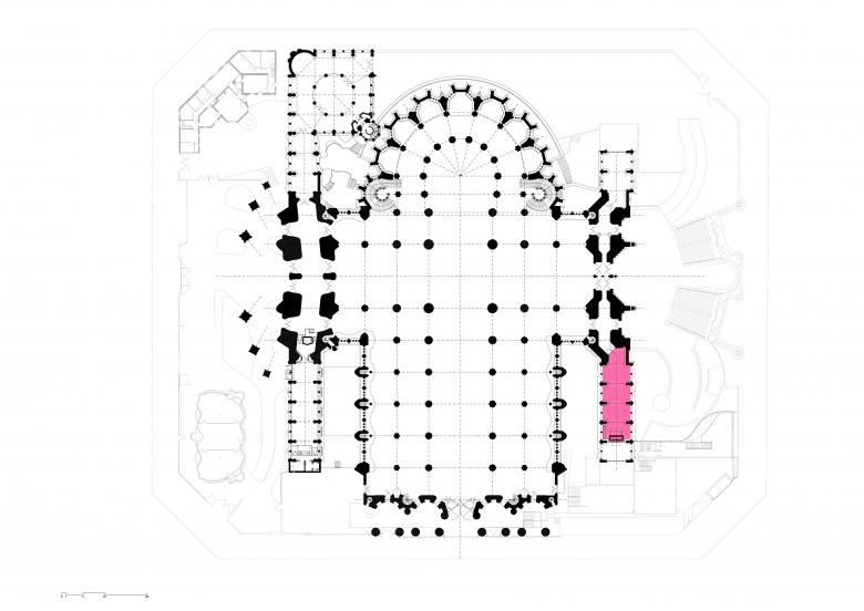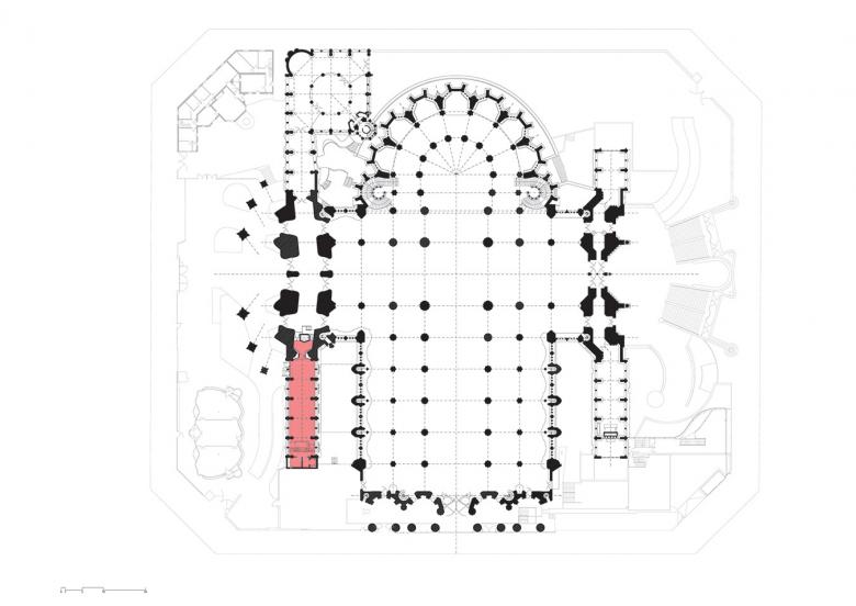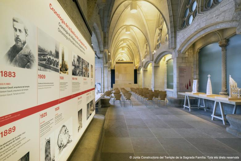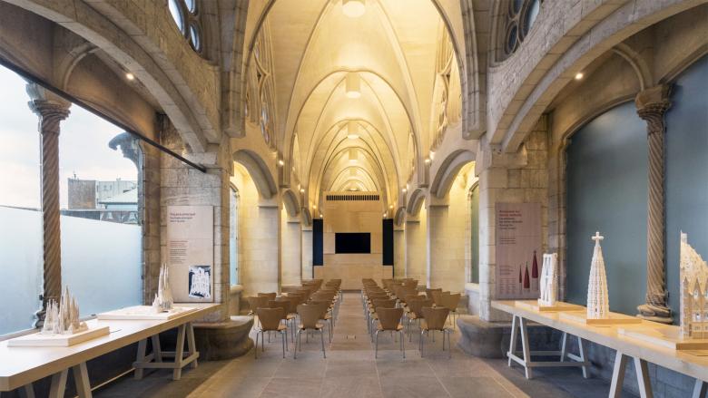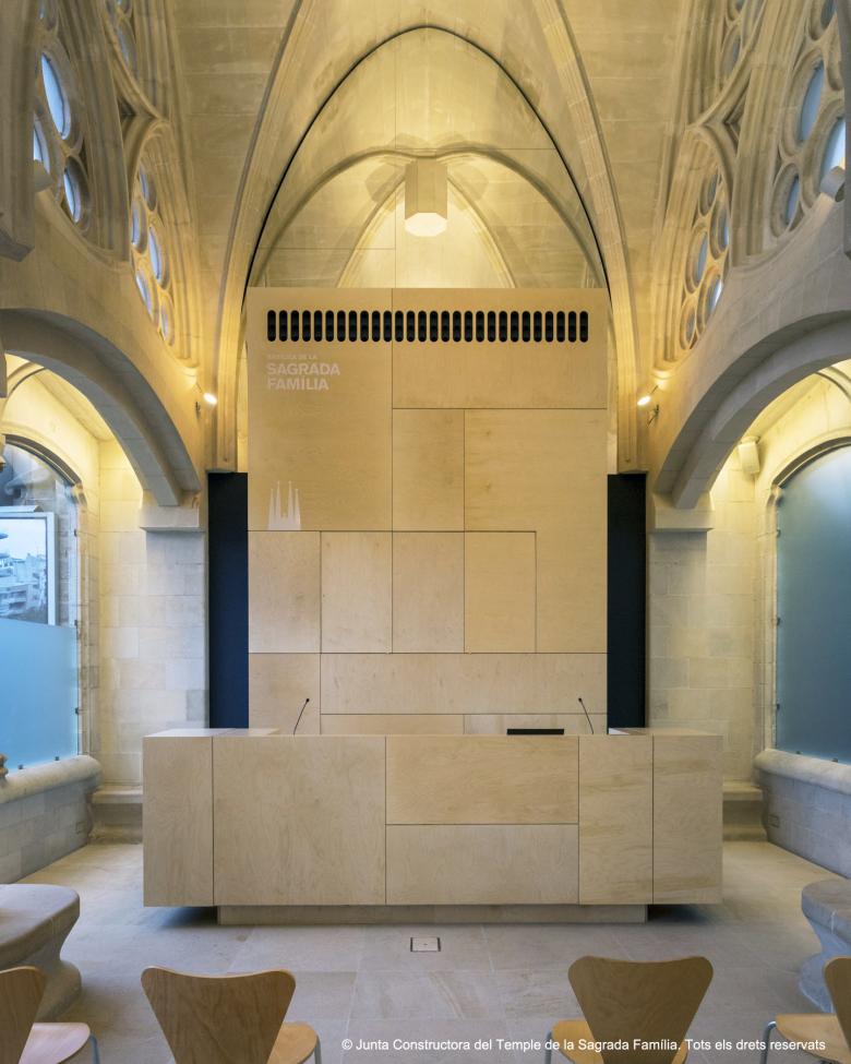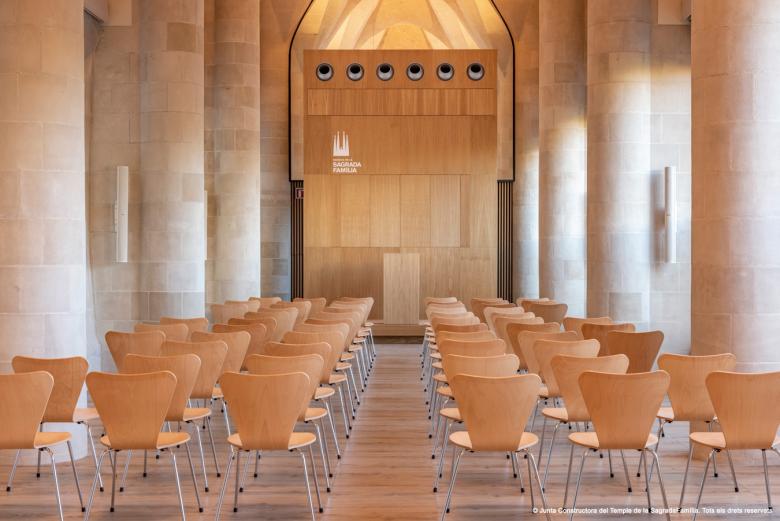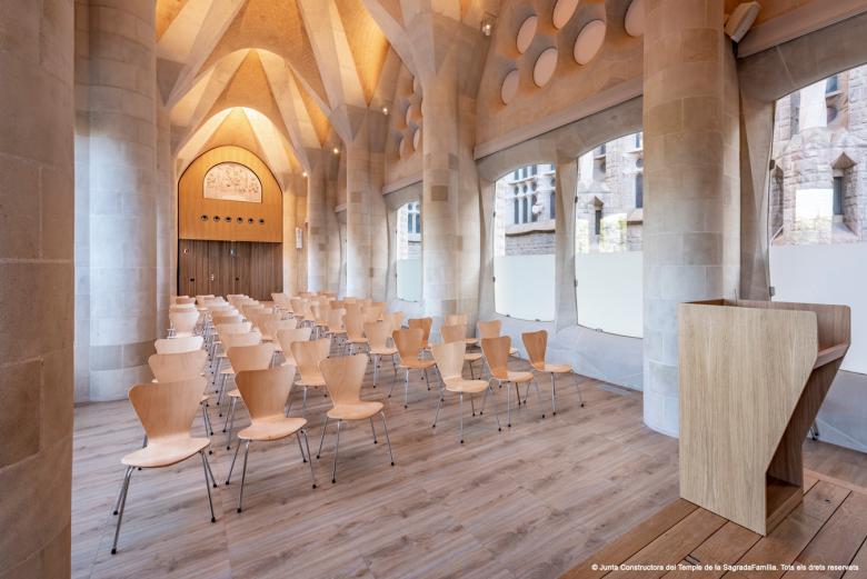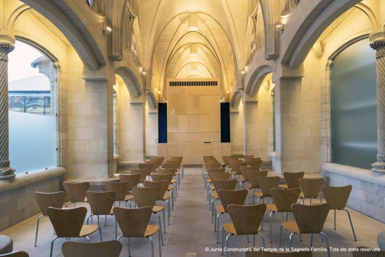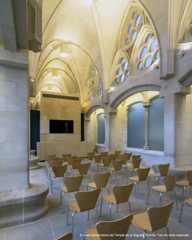 Sagrada Familia multi-purpose space. Interior intervention in Gaudi’s Mercè Cloister, Montserrat Cloister and Museum inside the Sagrada Familia Temple which consists in an adaptation of a interior spaces into a multi-purpose room, conference rooms, and museum spaces