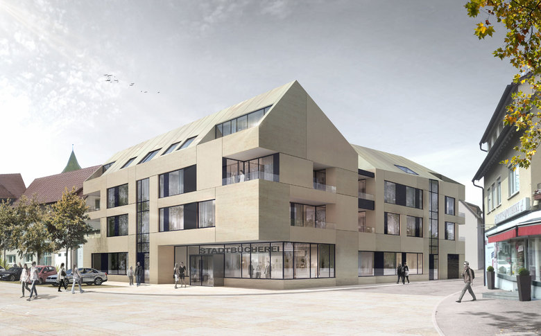 Der Kernbereich Beutelsbachs ist geprägt durch eher kleinteilige, weitgehend offene Baustrukturen. Mit einfachen, maßstabsgerechten Baukörpern knüpft der Entwurf an diese gebietstypischen Qualitäten an. Mit der künftigen Bebauung des Areals wird ein weiterer wichtiger Baustein zur Arrondierung des Ortskerns hinzugefügt. Insbesondere von der aus südlicher Richtung heranführenden Ulrichstraße aus bildet das neue Bücherei-Quartier das Entree in die Ortsmitte.