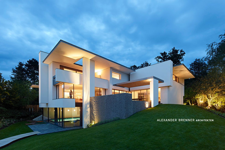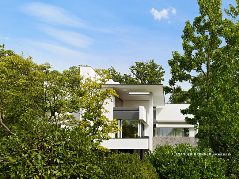 On a plot in a villa quarter at the edge of a forest in the south of Stuttgart, a villa thoroughly designed down to the smallest detail was build for an art lover and her family.