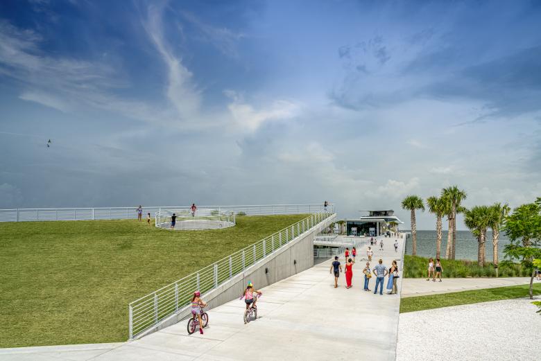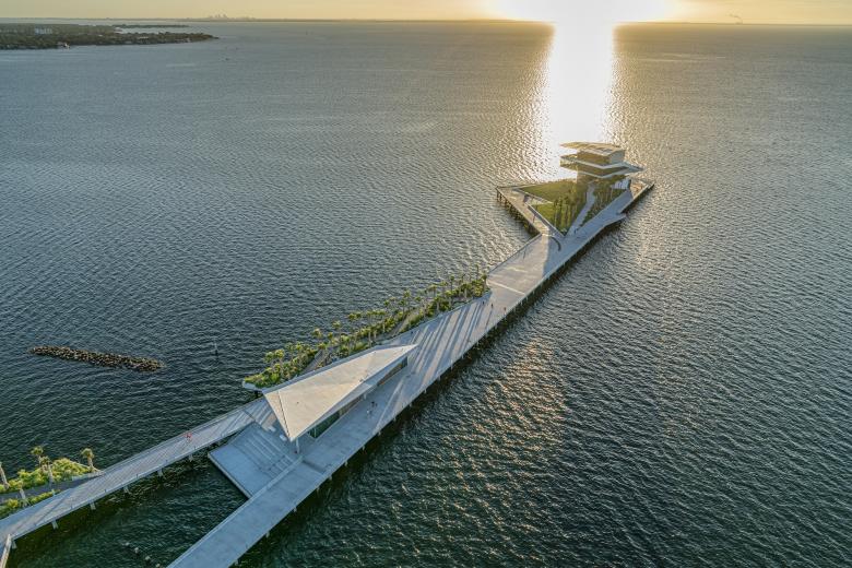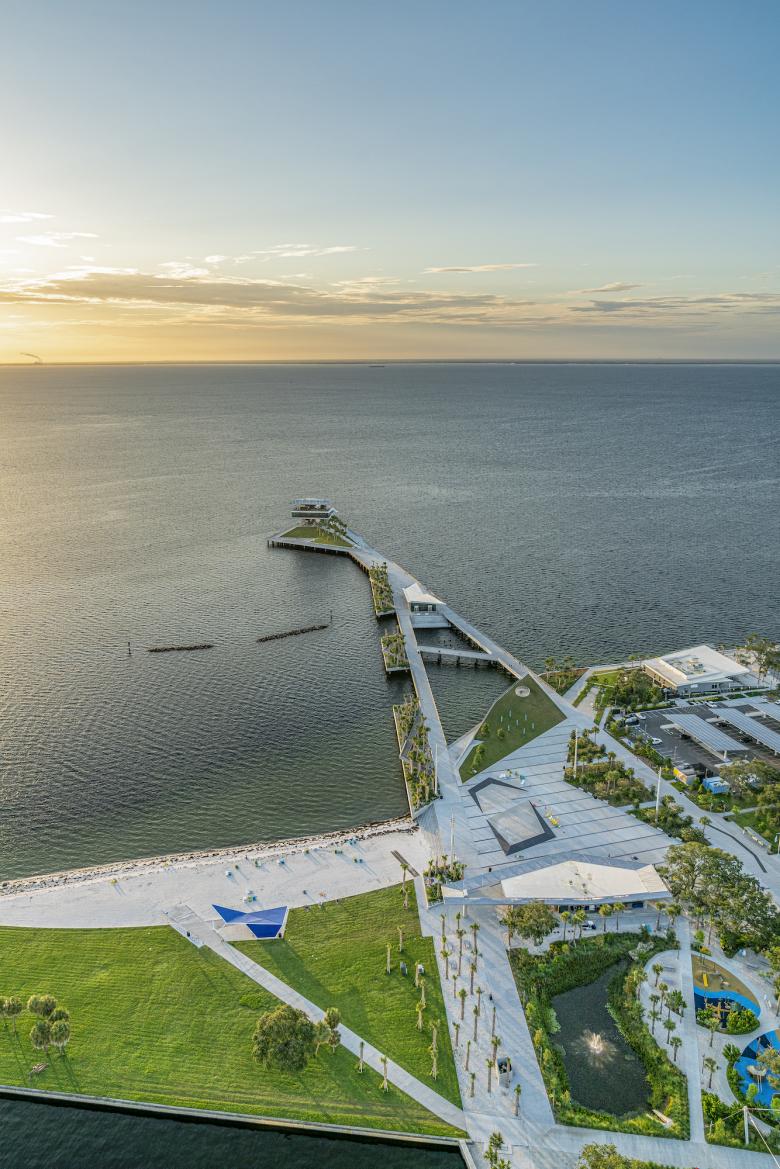 The Rogers Partners / ASD|SKY / Ken Smith Workshop design for the new St. Pete Pier creates a destination that embraces the Pier’s role both as an icon for the City of St. Petersburg and an integral part of the vitality of downtown – a place for tourists and the local community alike, one that honors its history, while establishing a new icon for a 21st century public place.